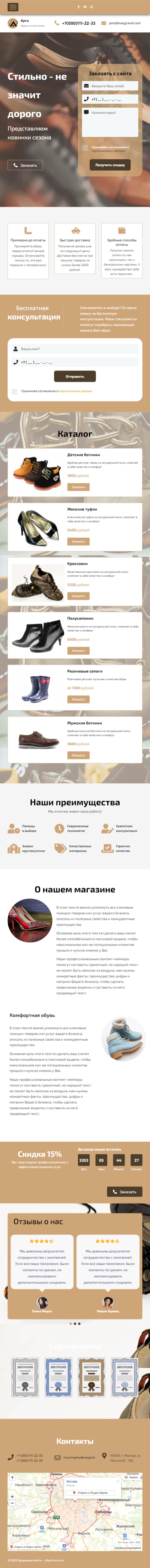 Закажите готовый продающий сайт лендинг #1516201 в Иванове за 1-3 дня «под ключ»: свёрстан, отрисован и готов к рекламе. Тематика шаблона «Обувь, стильная».
