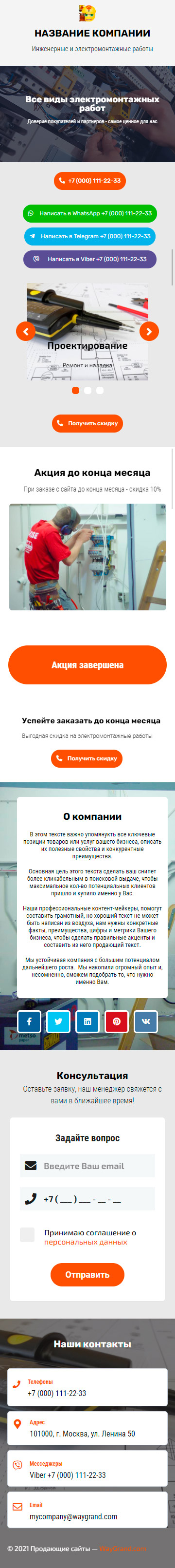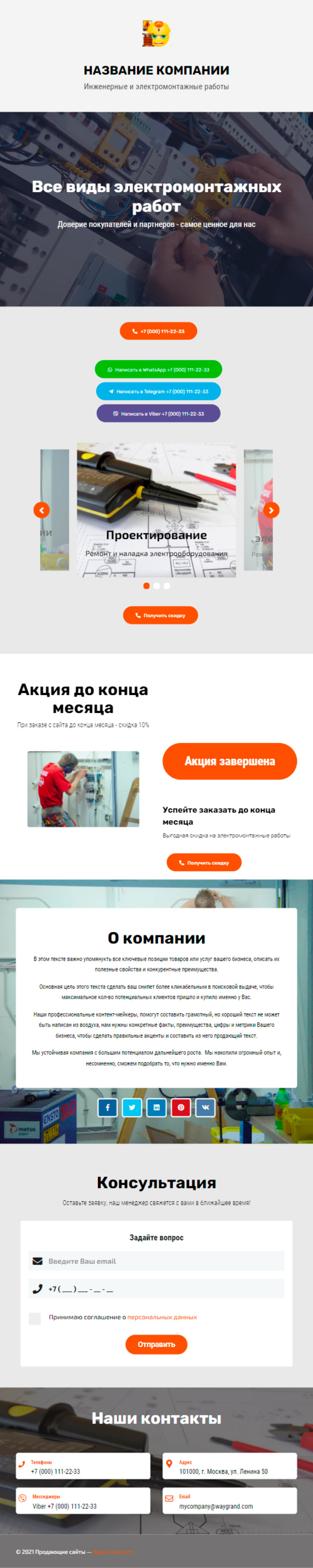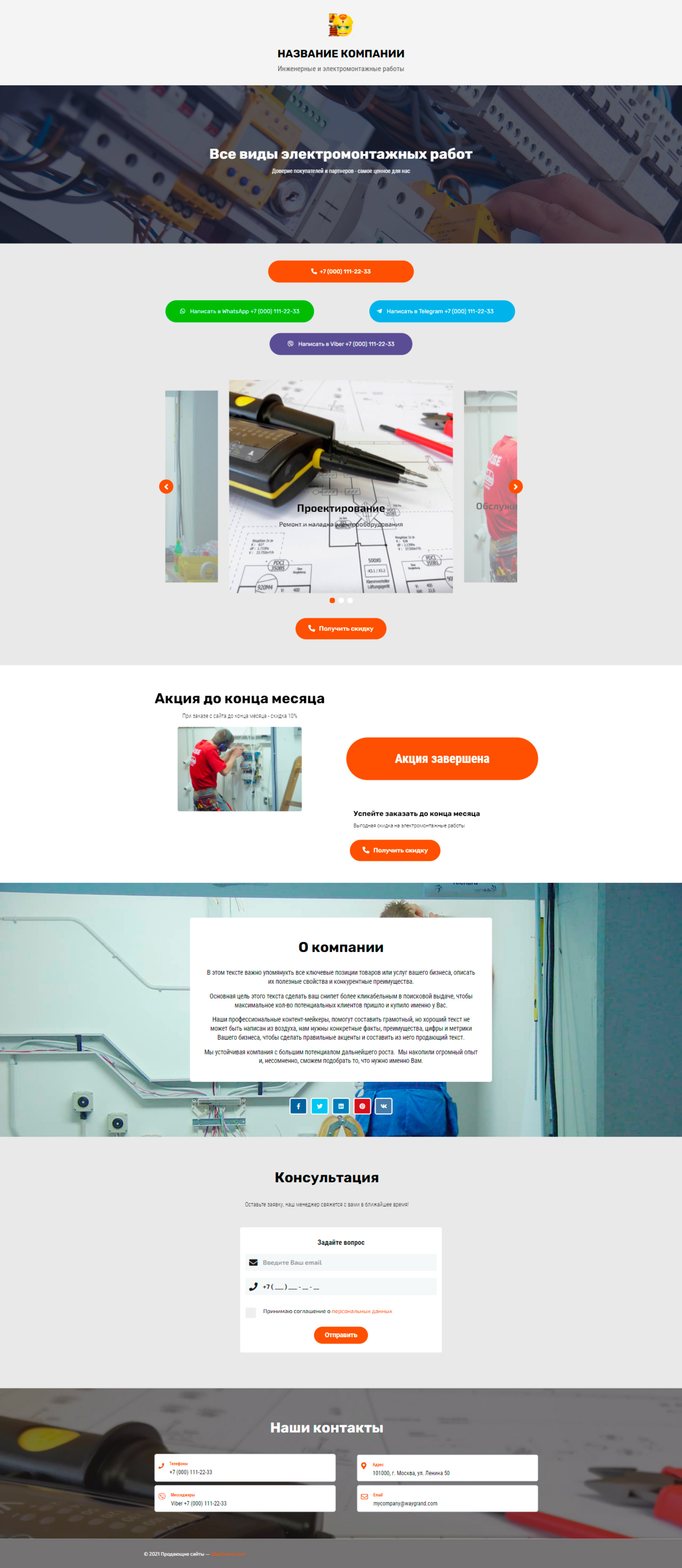 Закажите готовый продающий сайт визитка #2189101 в Иванове за 5-7 дня «под ключ»: свёрстан, отрисован и готов к рекламе. Тематика шаблона «Инженерные и электромонтажные работы».
