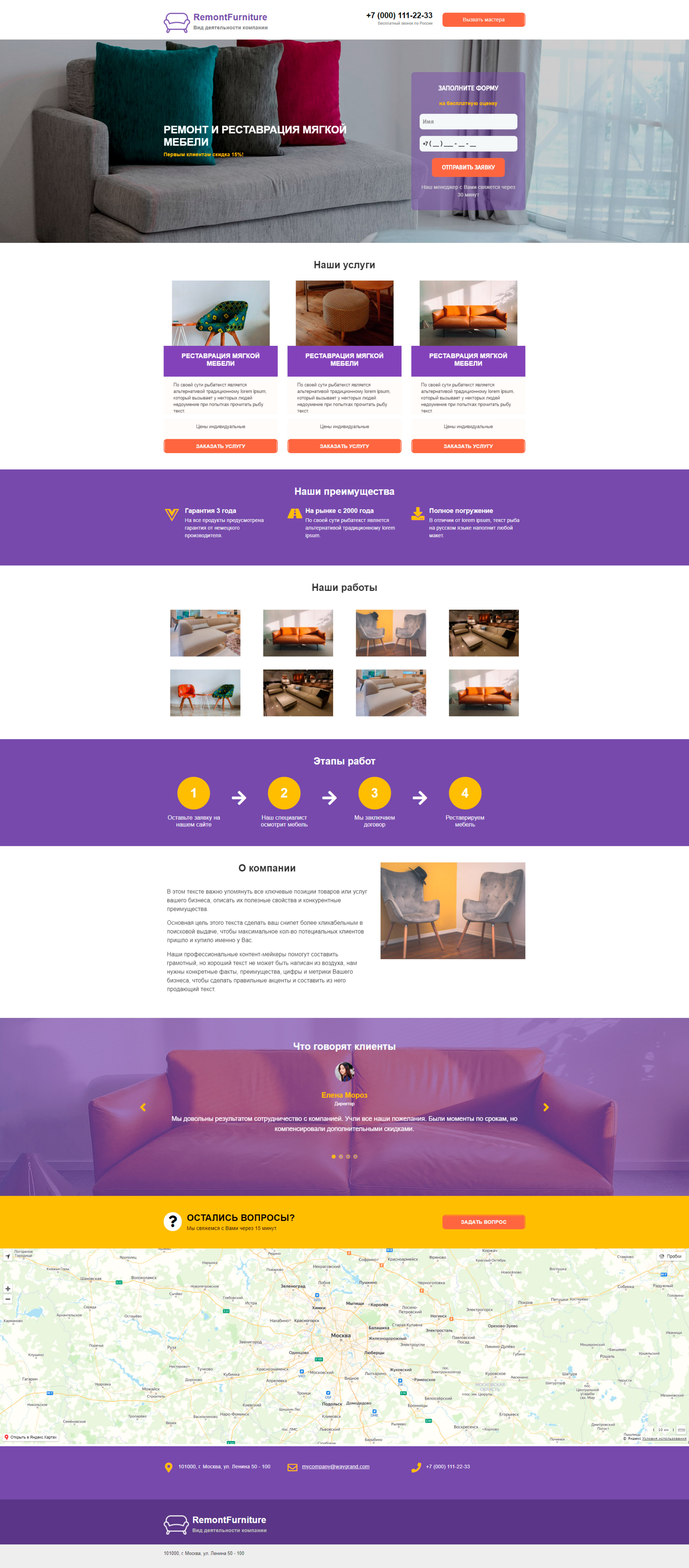 Закажите готовый продающий сайт лендинг #0924201 в Иванове за 1-3 дня «под ключ»: свёрстан, отрисован и готов к рекламе. Тематика шаблона «Ремонт и реставрация мебели».