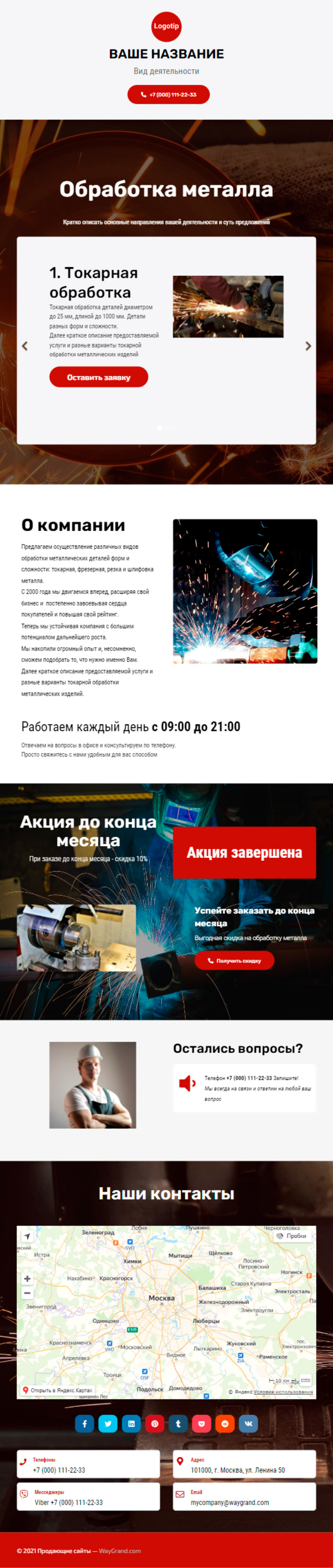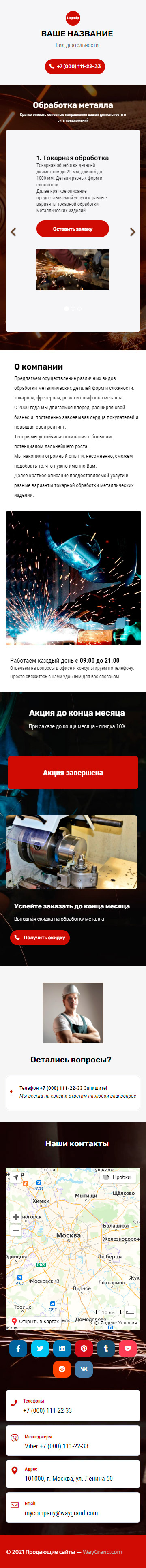 Закажите готовый продающий сайт визитка #1209101 в Иванове за 5-7 дня «под ключ»: свёрстан, отрисован и готов к рекламе. Тематика шаблона «Обработка металла».