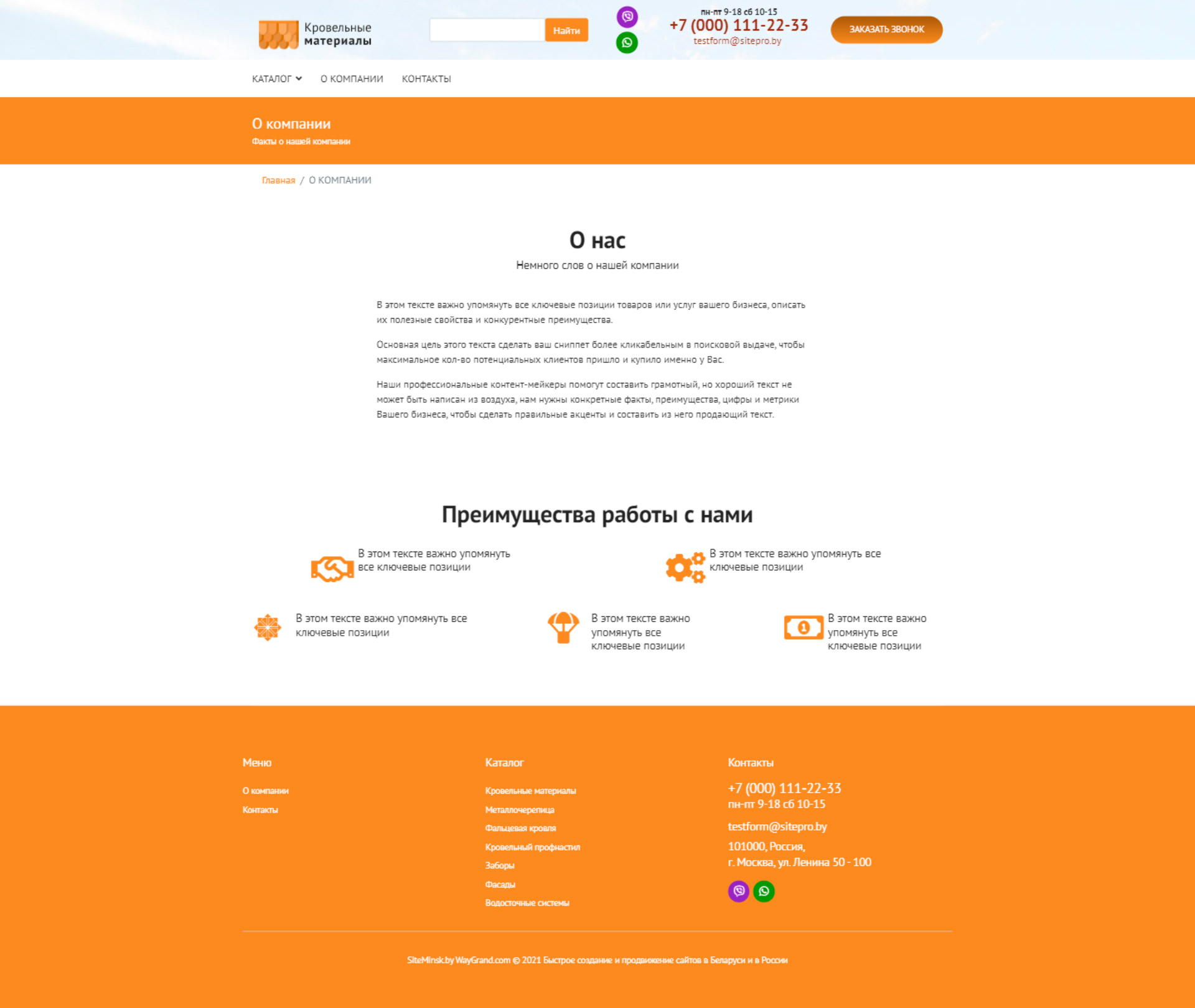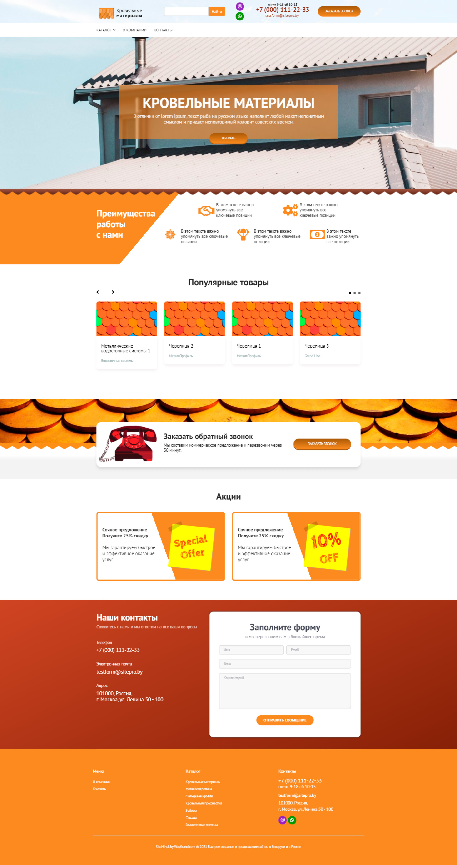Закажите готовый продающий сайт визитка #2023402 в Иванове за 5-7 дня «под ключ»: свёрстан, отрисован и готов к рекламе. Тематика шаблона «Кровельные материалы».