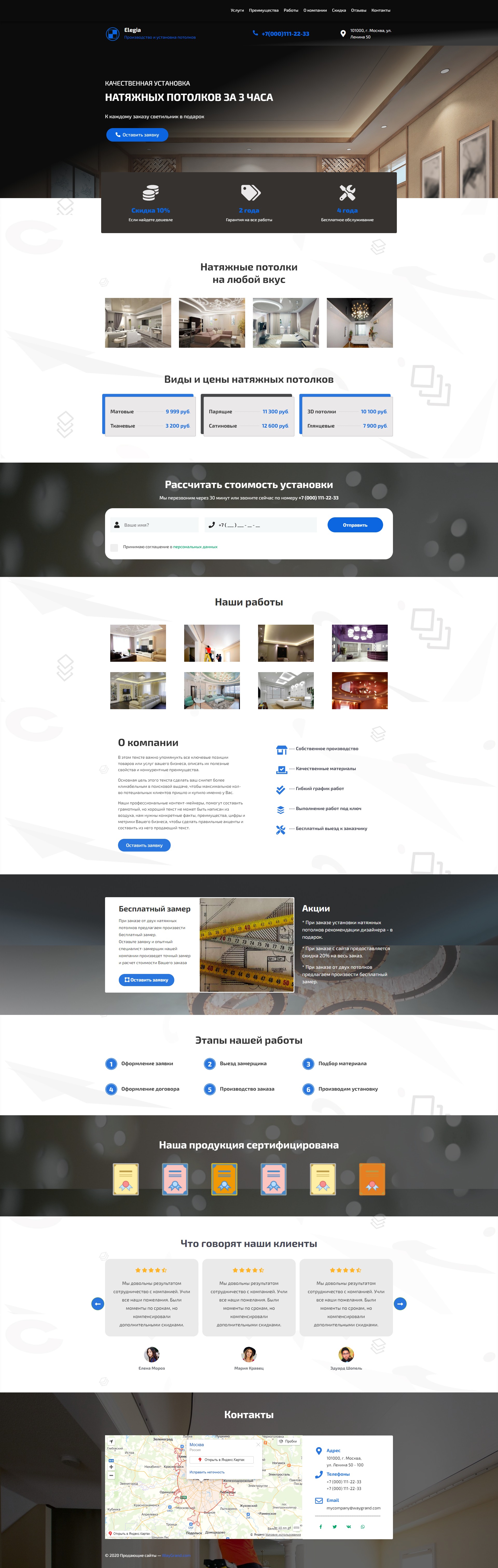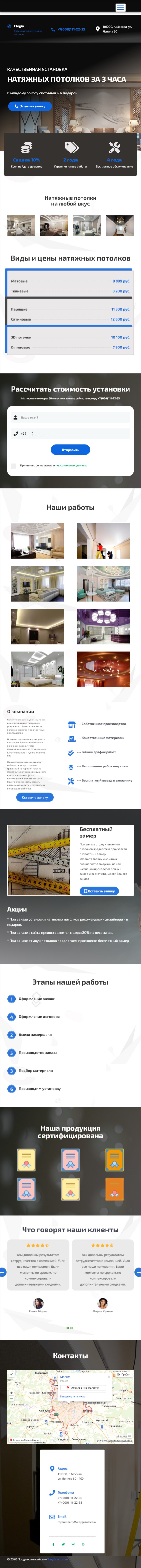 Закажите готовый продающий сайт лендинг #2029202 в Иванове за 1-3 дня «под ключ»: свёрстан, отрисован и готов к рекламе. Тематика шаблона «Натяжные потолки».