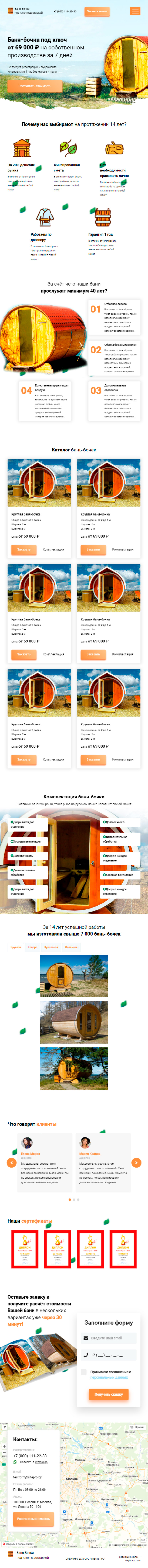 Закажите готовый продающий сайт лендинг #2172204 в Иванове за 1-3 дня «под ключ»: свёрстан, отрисован и готов к рекламе. Тематика шаблона «Баня-бочки».