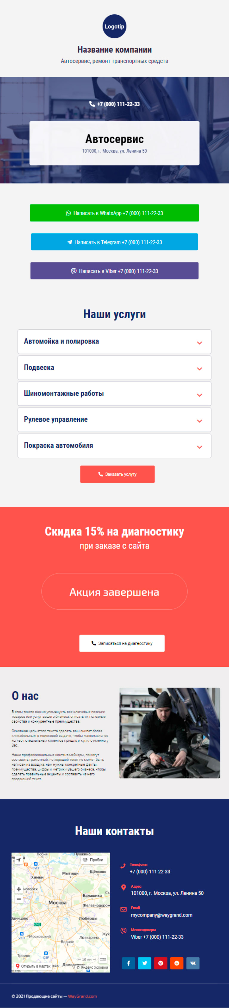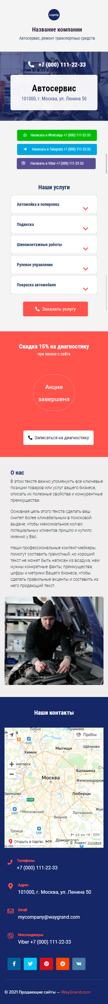 Закажите готовый продающий сайт визитка #0210101 в Иванове за 5-7 дня «под ключ»: свёрстан, отрисован и готов к рекламе. Тематика шаблона «Автосервис, ремонт транспортных средств».