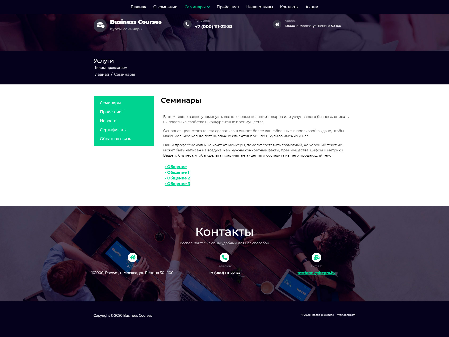 Закажите готовый продающий сайт визитка #1448303 в Иванове за 5-7 дня «под ключ»: свёрстан, отрисован и готов к рекламе. Тематика шаблона «Бизнес курсы и семинары».