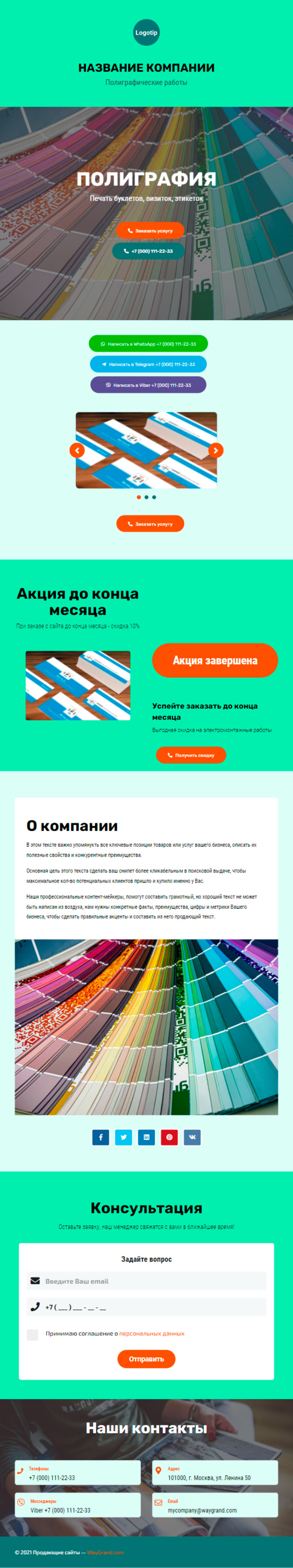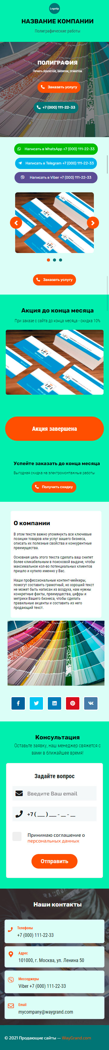 Закажите готовый продающий сайт визитка #1826101 в Иванове за 5-7 дня «под ключ»: свёрстан, отрисован и готов к рекламе. Тематика шаблона «Полиграфия».