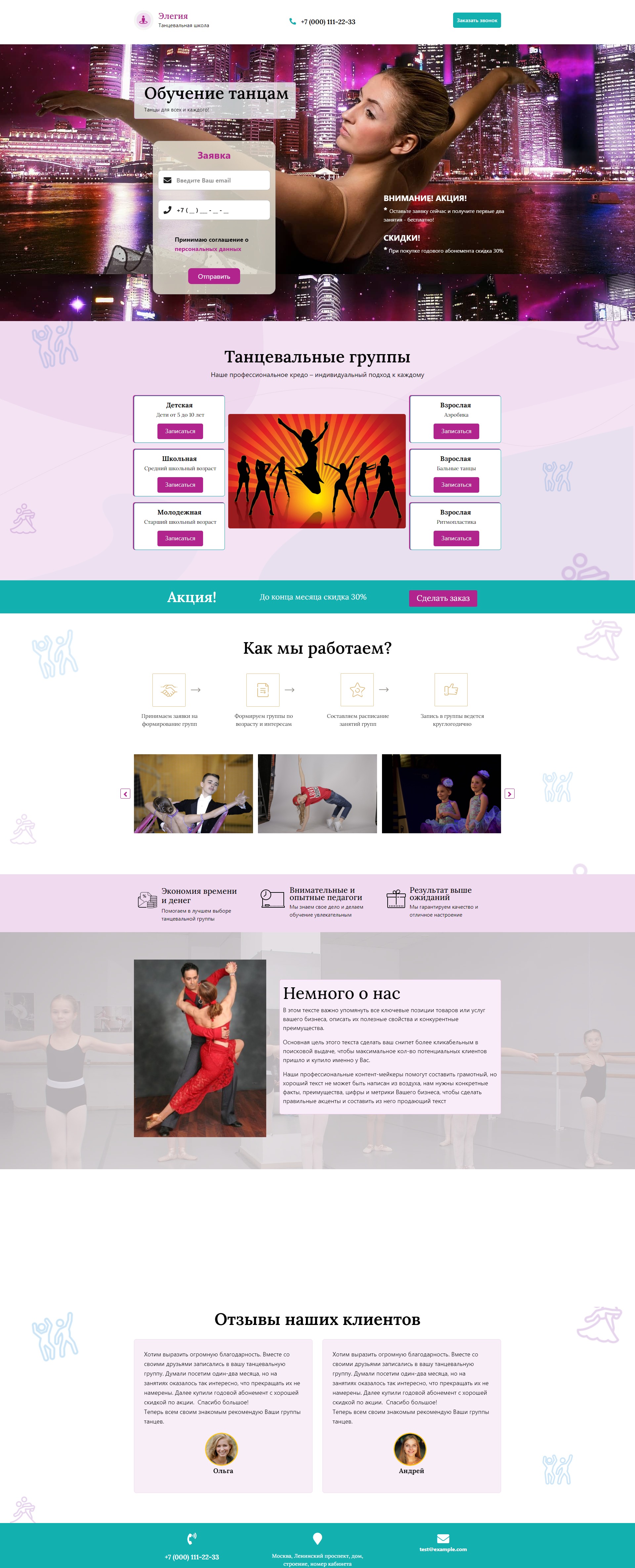 Закажите готовый продающий сайт лендинг #1923201 в Иванове за 1-3 дня «под ключ»: свёрстан, отрисован и готов к рекламе. Тематика шаблона «Обучение танцам».