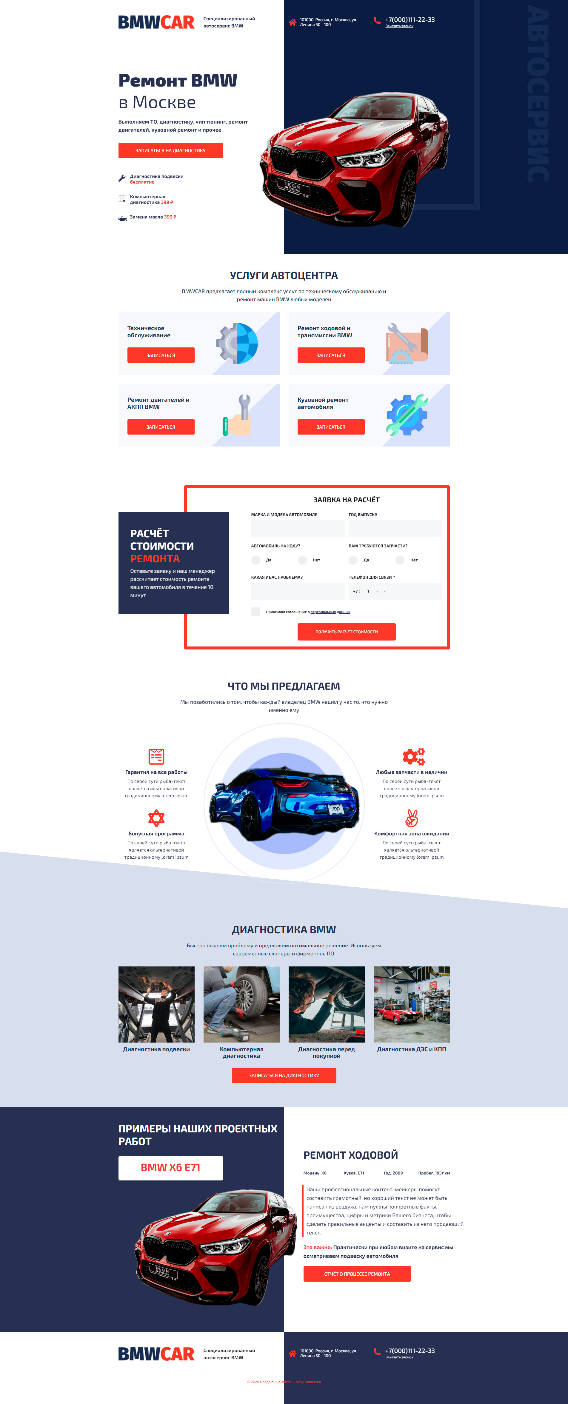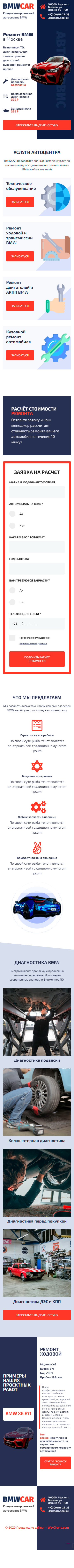 Закажите готовый продающий сайт лендинг #0210202 в Иванове за 1-3 дня «под ключ» по выгодным ценам на WayGrand: свёрстан, отрисован и готов к рекламе. Тематика шаблона «Ремонт BMW».