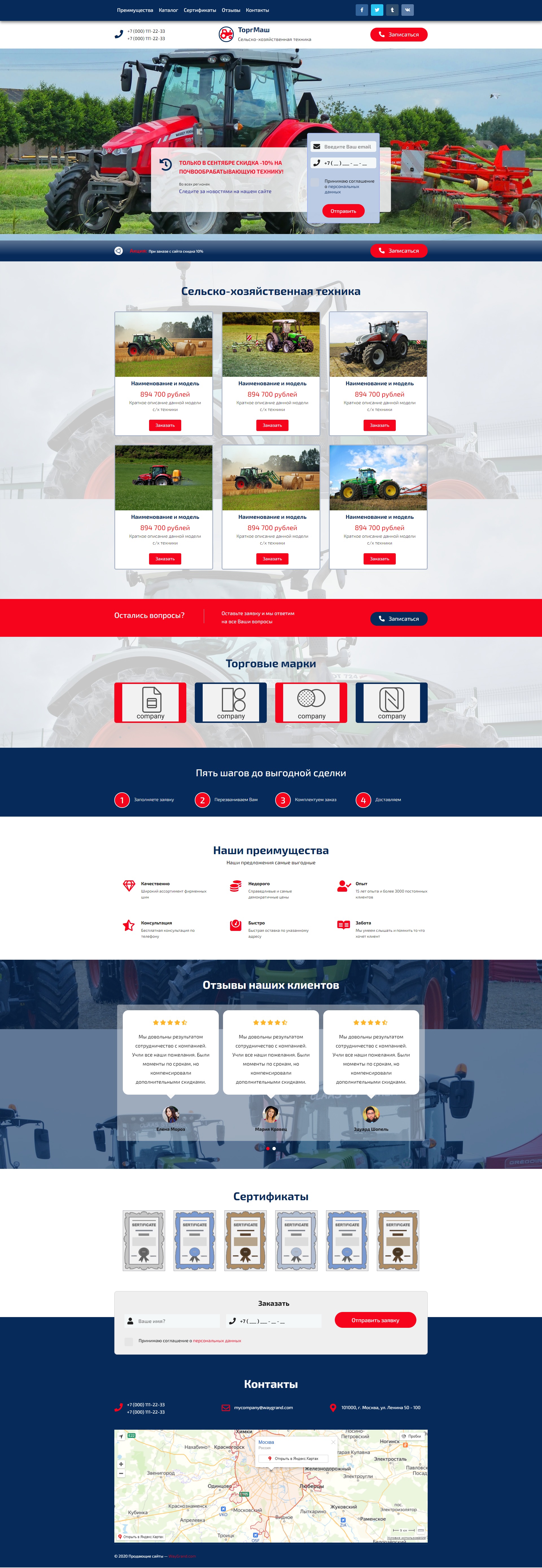 Закажите готовый продающий сайт лендинг #2553202 в Иванове за 1-3 дня «под ключ»: свёрстан, отрисован и готов к рекламе. Тематика шаблона «Сельско-хозяйственная техника».