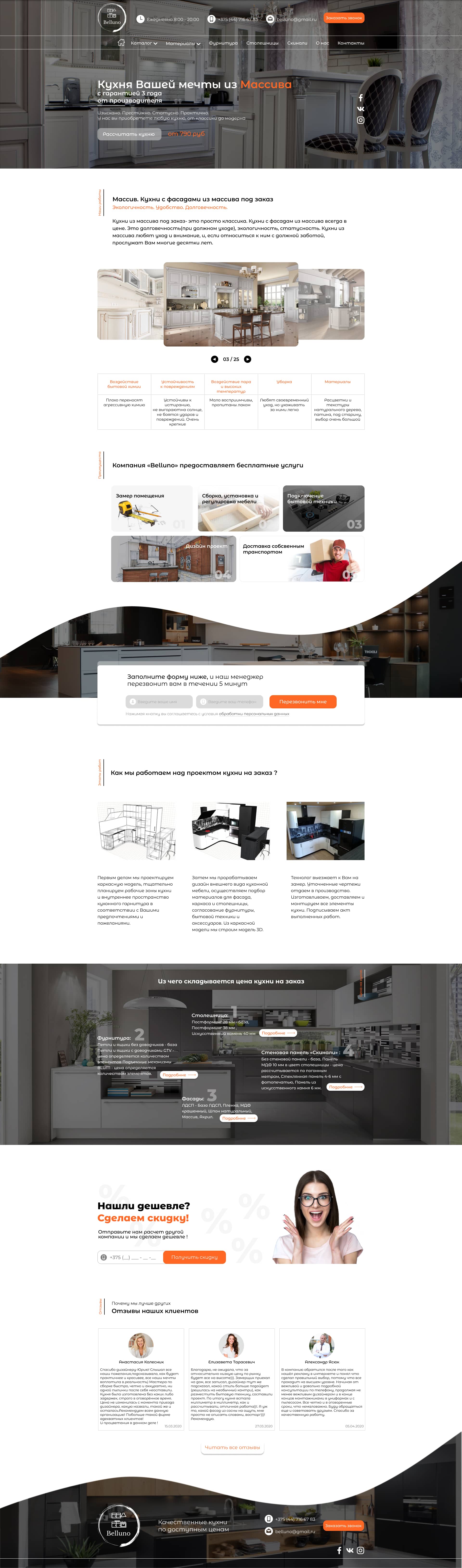 - Промоблок "Кухня Вашей мечты" с кнопкой призыва к действию "Рассчитать кухню"