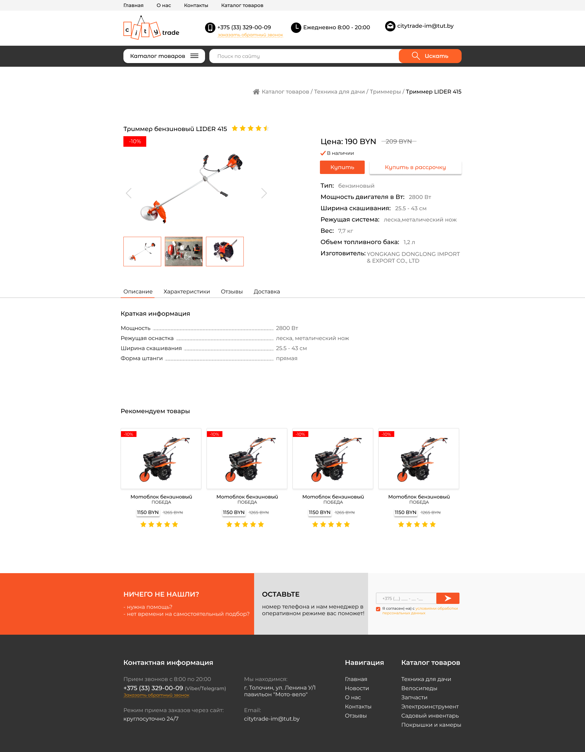 Закажите готовый продающий сайт визитка #281 в Иванове за 5-7 дня «под ключ»: свёрстан, отрисован и готов к рекламе. Тематика шаблона «Розничная продажа садовой техники, велосипедов».