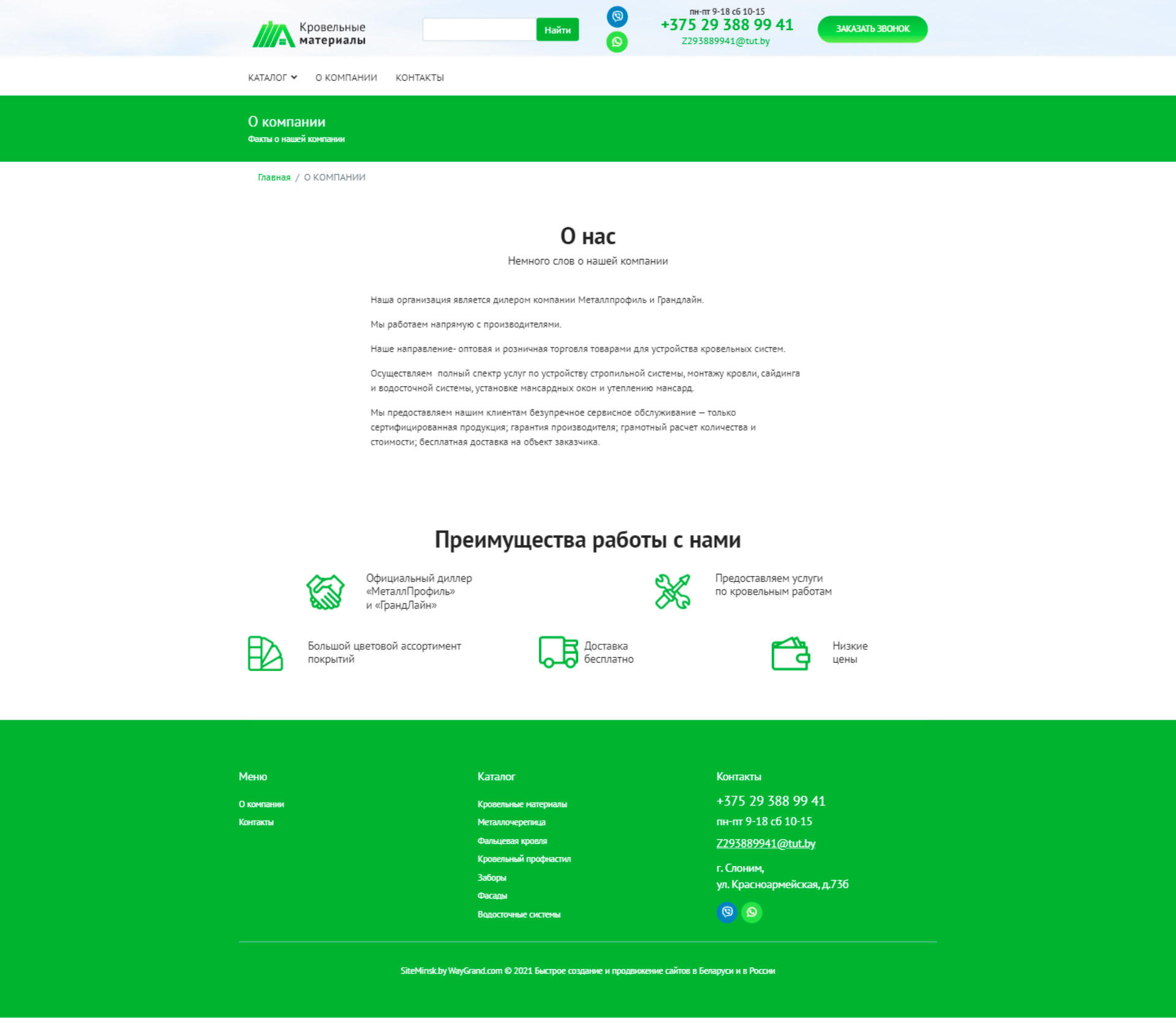 Закажите готовый продающий сайт визитка #324 в Иванове «под ключ» на waygrand по выгодной цене: свёрстан, отрисован и готов к рекламе. Тематика шаблона «Кровельные материалы».