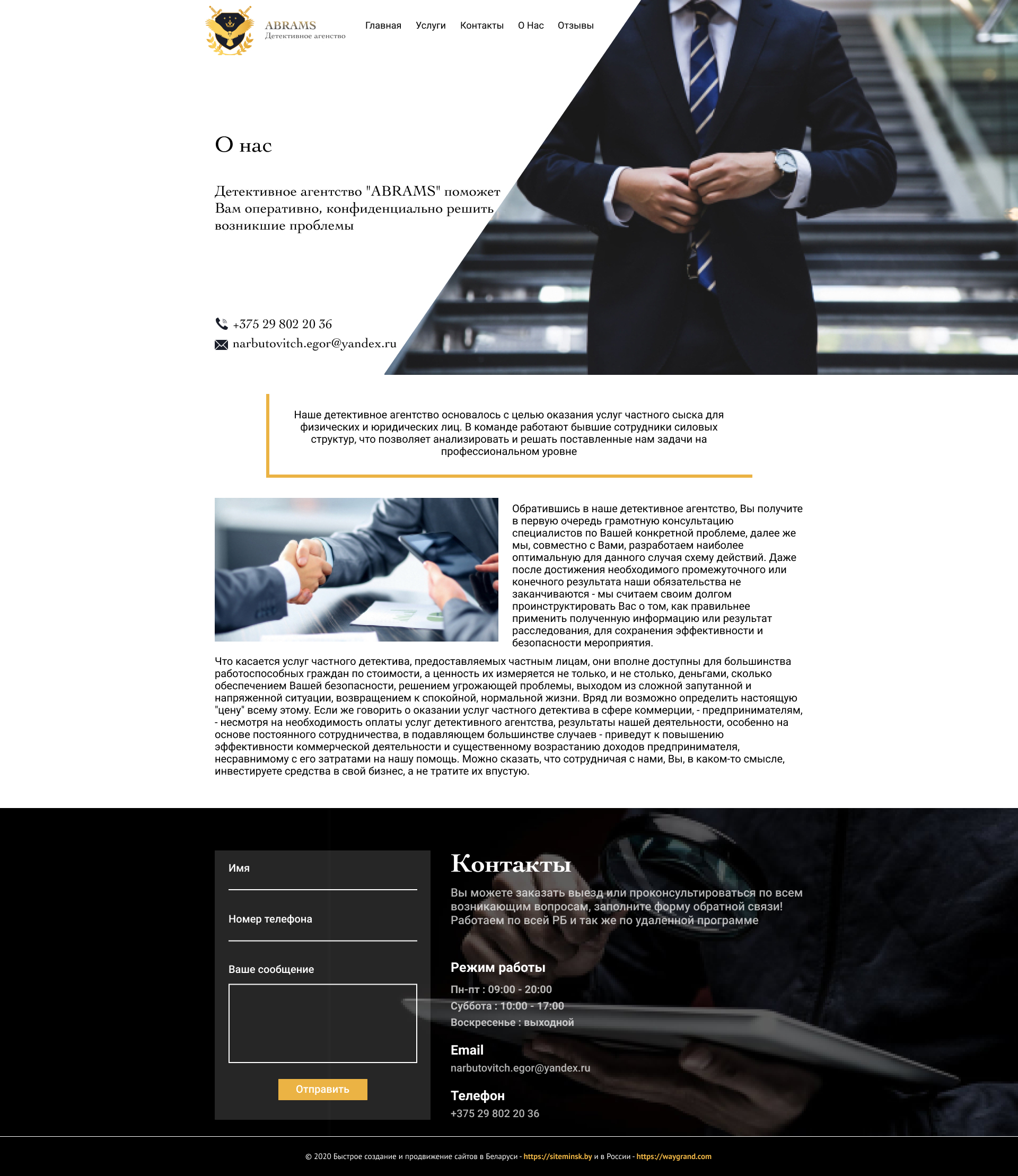 Закажите готовый продающий сайт визитка #239 в Иванове за 5-7 дня «под ключ»: свёрстан, отрисован и готов к рекламе. Тематика шаблона «Частное детективное агентство».